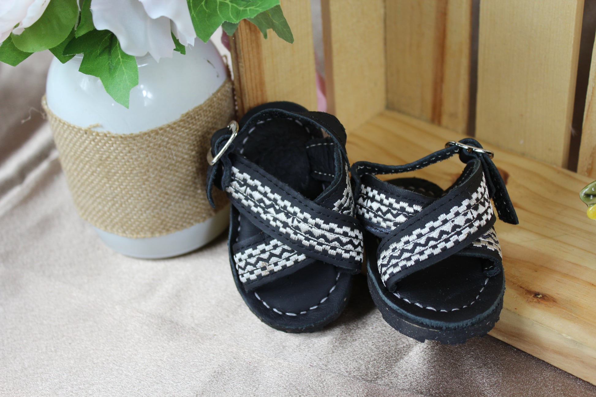 Kids & Baby Two Strap Cross Over, black Grekas Embroidered Mexican Huaraches Sandals